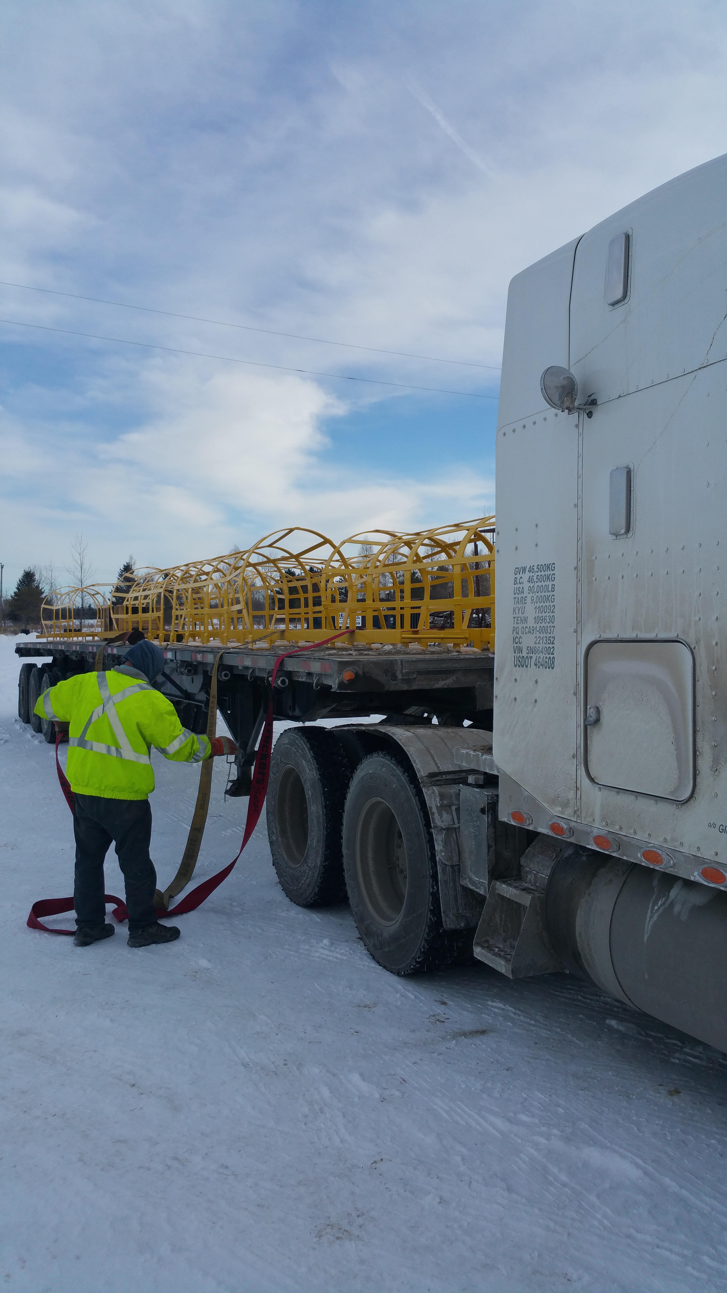 Safety ladders loaded for delivery to the oil sands.